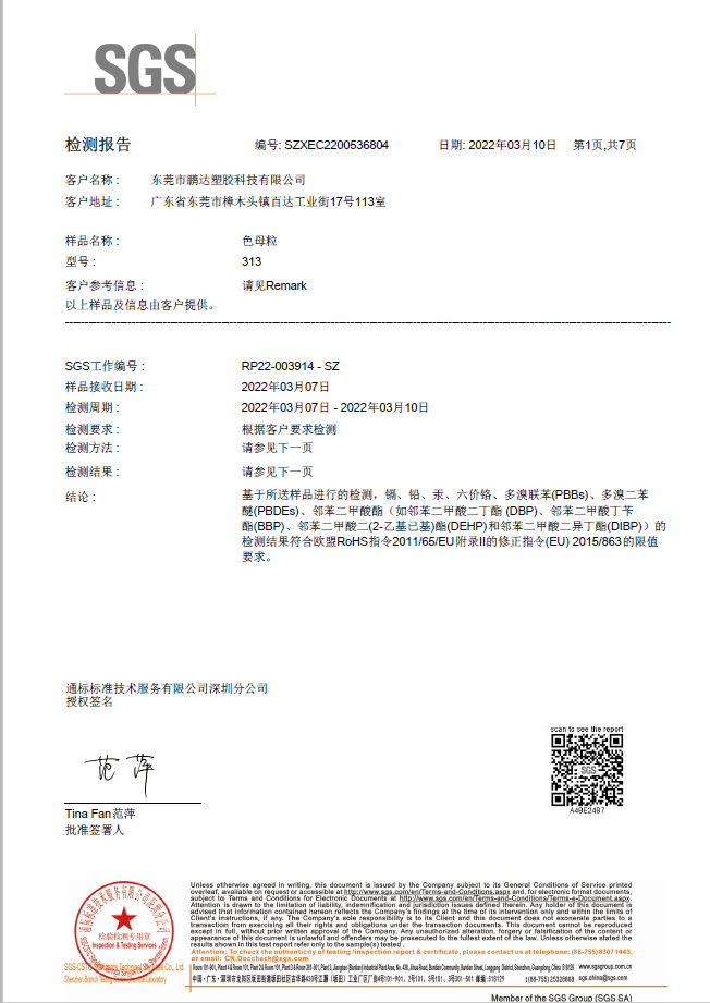 東莞市鵬達塑膠科技有限公司是一家集色母、色粉、功能母粒、染色抽粒、改性工程塑料的研發(fā)、生產(chǎn)、銷售于一體的生產(chǎn)企業(yè),座落于中國塑膠商貿(mào)重鎮(zhèn)-廣東省東莞市樟木頭鎮(zhèn),公司建立了一套完善的研發(fā)生產(chǎn)、品質(zhì)管理、銷售服務體系,依托自身強大的研發(fā)能力及嚴謹高效的管理,生產(chǎn)高品質(zhì)、高技術含量的健康環(huán)保色母粒和多功能母粒,年生產(chǎn)能力達萬噸,給廣大客戶提供了可靠的交貨保障。